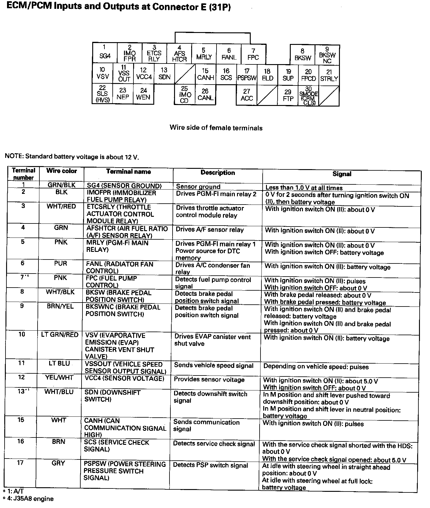 ECM/PCM Inputs And Outputs At Connector E (31P) Part 1: