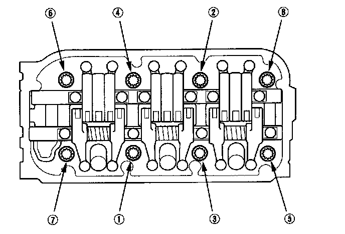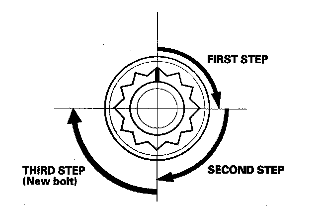 Cylinder HeadTorque the cylinder head bolts in sequence to 30 N-m (3.0 kgf-m, 22 lbf-ft). After torquing, tighten all cylinder head bolts in two steps (90° per step) if you are using a new cylinder head bolt, tighten the bolt an extra 90°.