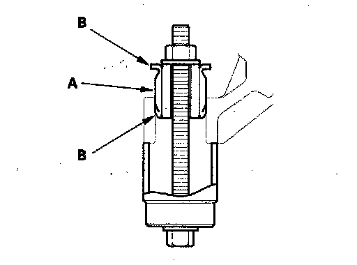6. Install the gearbox mount cushion by tightening the nut until the mount cushion edges (B) contact the gearbox flange surface.
