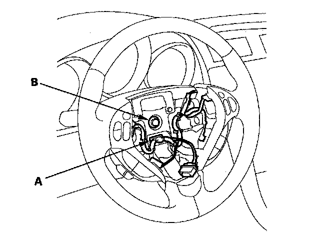 4. Disconnect the cable reel subharness connector (A) from the cable reel.