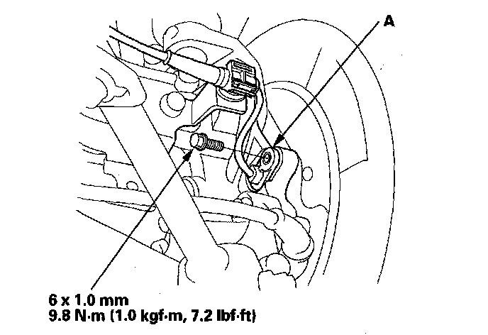 3. Remove the wheel sensor (A) from the knuckle. Do not disconnect the wheel sensor connector.