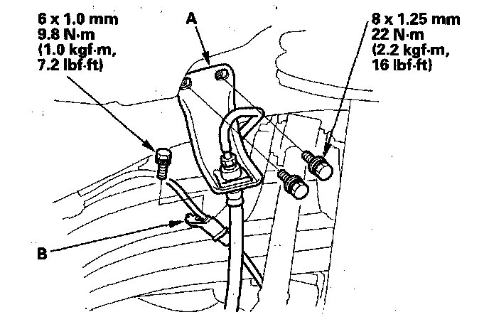 7. Remove the wheel sensor harness mounting bracket (B).