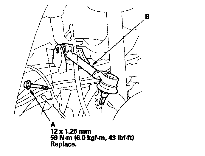 8. Remove the flange bolt (A), then remove the upper arm (B).