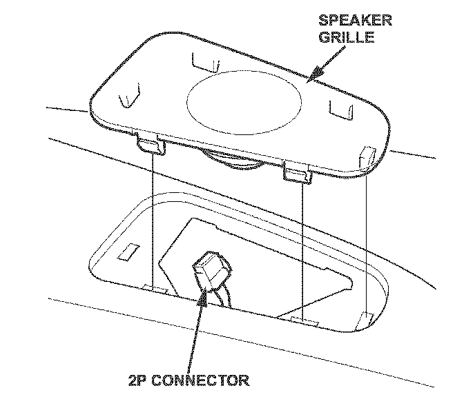 6. Connect the 2P connector, and snap the speaker/grille assembly back into the dashboard.