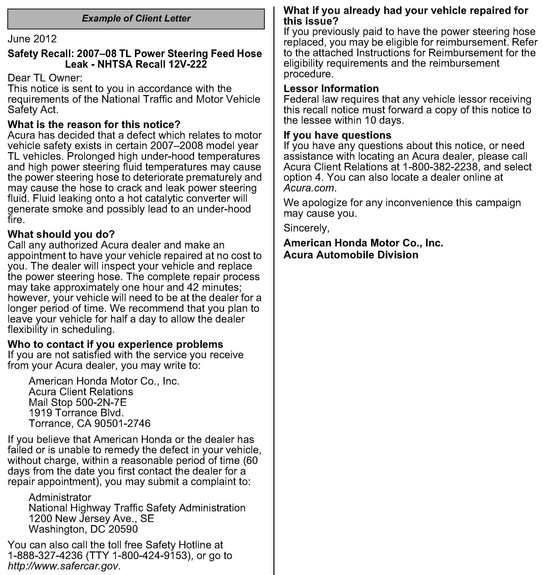 ^ Service bulletin 12-020, Safety Recall: 2007-08 TL