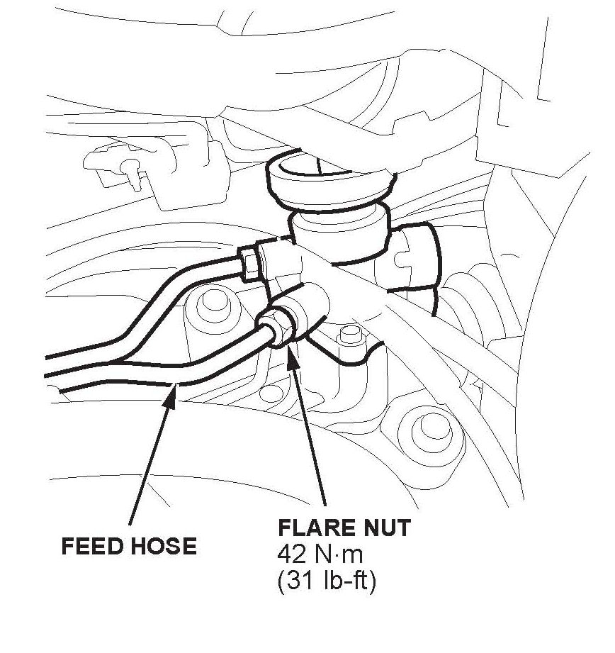 ^ Torque the gearbox flare nut on the new feed hose to 42 N.m (31 lb-ft).