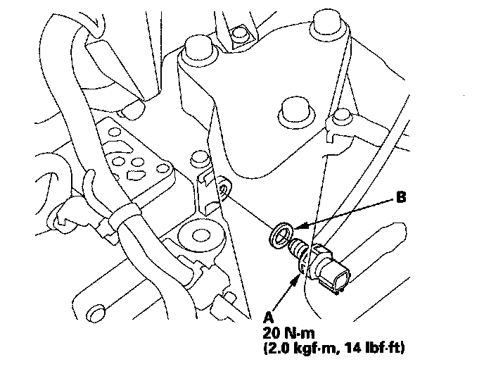 5. Remove the 4th clutch transmission fluid pressure switch (A) and the sealing washer (B).