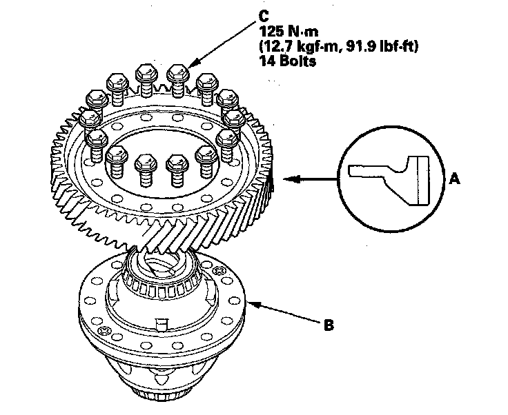 NOTE: The final driven gear bolts (C) have left-hand threads.