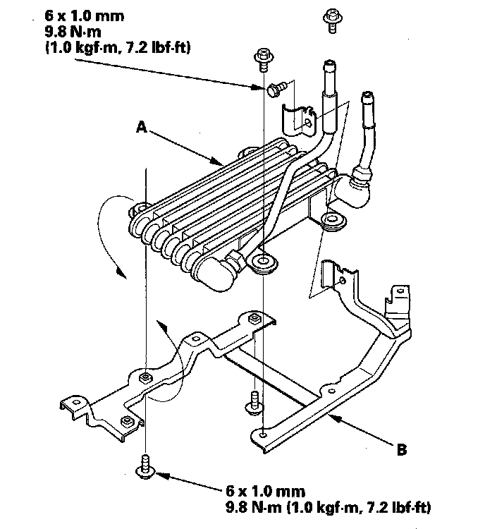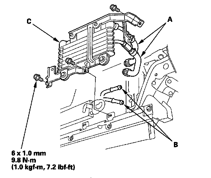5. If needed, remove the ATF cooler (A) from the stay (B).