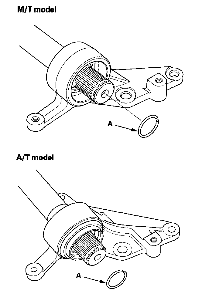 3. Insert the intermediate shaft assembly (A) into the differential until the set ring locks in the groove.