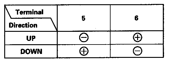 - Connect an analog voltmeter between the No. 2 (+) and No. 3 (-) terminals, and run the power window motor down or up. The voltmeter needle should move back and forth alternately (a digital voltmeter should show the average voltage between 0 - 5 V).