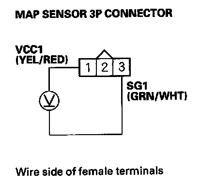 7. Measure voltage between MAP sensor 3P connector terminals No. 1 and No. 3.