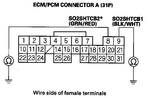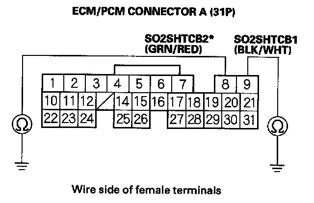 12. Check for continuity between ECM/PCM connector terminal (A9 (A8)*) and body ground.