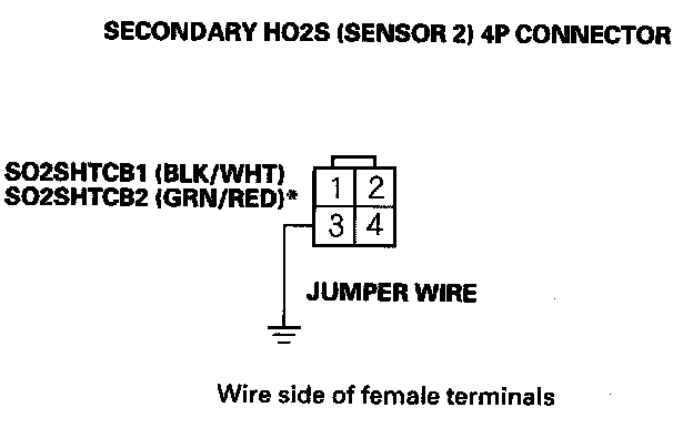 13. Connect secondary HO2S (Sensor 2) 4P connector terminal No. 3 to body ground with a jumper wire.