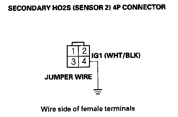 16. Connect secondary HO2S (Sensor 2) 4P connector terminal No. 4 to body ground with a jumper wire.