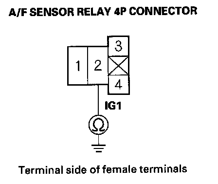 17. Check for continuity between A/F sensor relay 4P connector terminal No. 2 and body ground.