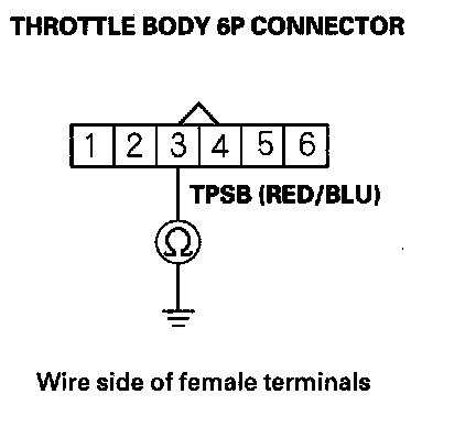 8. Check for continuity between throttle body 6P connector terminal No. 3 and body ground.