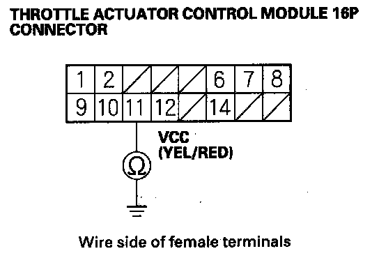 NO - Repair open in the wire between the throttle body and the throttle actuator control module (VCC line), then go to step 17.