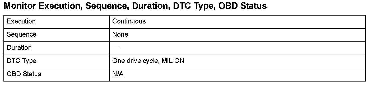 Monitor Execution, Sequence, Duration, DTC Type, OBD Status