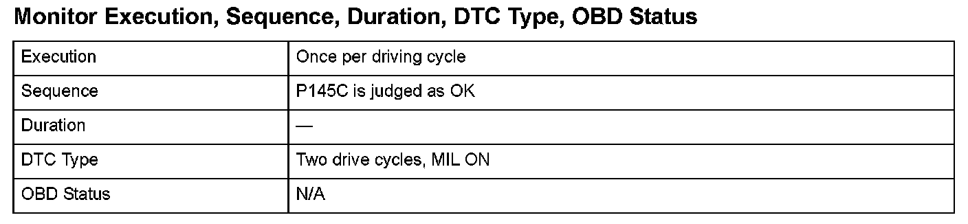Monitor Execution, Sequence, Duration, DTC Type, OBD Status