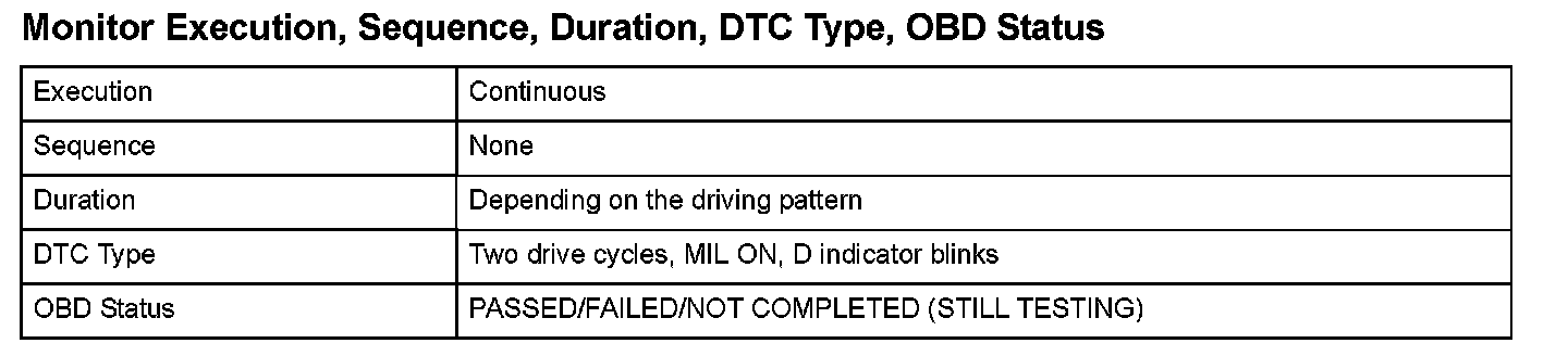 Monitor Execution, Sequence, Duration, DTC Type, OBD Status