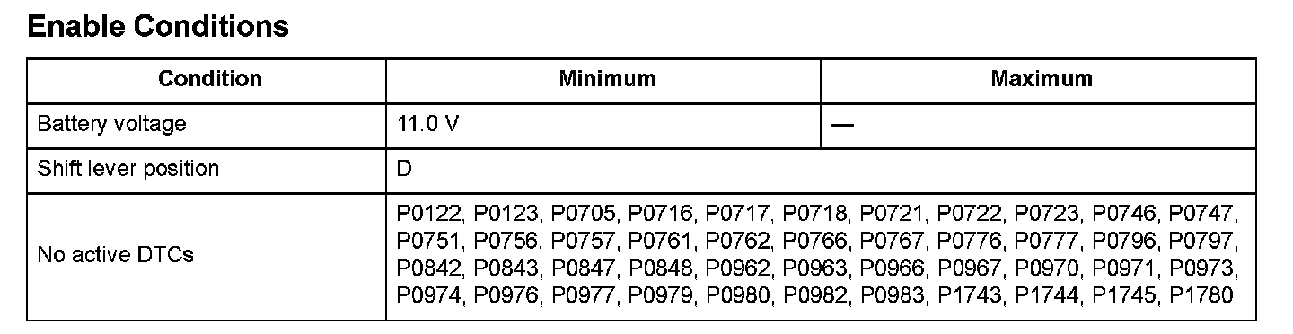 Start the engine, and accelerate the vehicle until the transmission shifts into 5th gear in the D position.