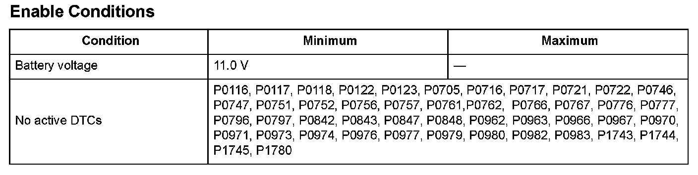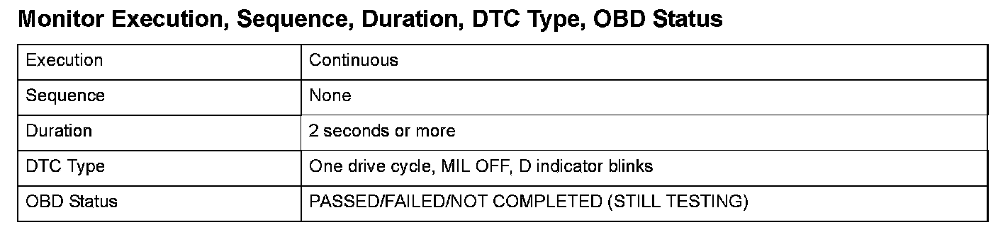 Monitor Execution, Sequence, Duration, DTC Type, OBD Status