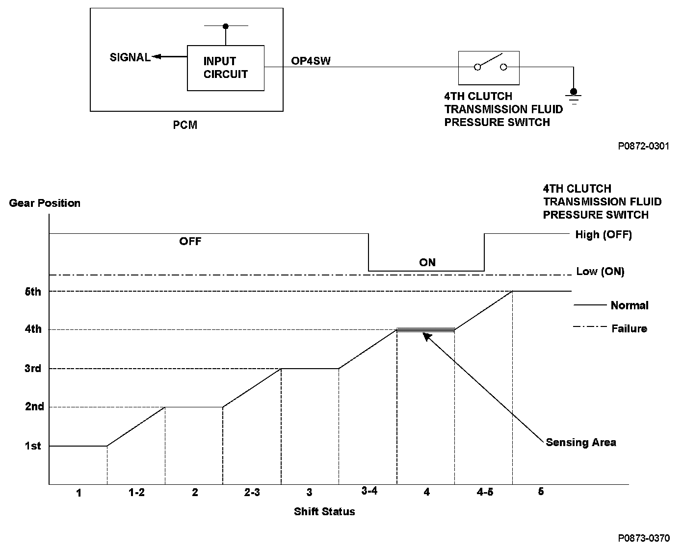 DTC P0873: Open in 4th Clutch Transmission Fluid Pressure Switch Circuit, or 4th Clutch Transmission Fluid Pressure Switch Stuck OFFGeneral Description