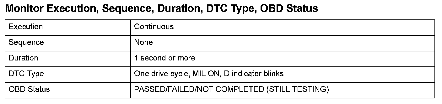 Monitor Execution, Sequence, Duration, DTC Type, OBD Status