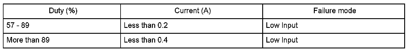 The measured current for the PCM's command value is as specified here for at least 1 second.