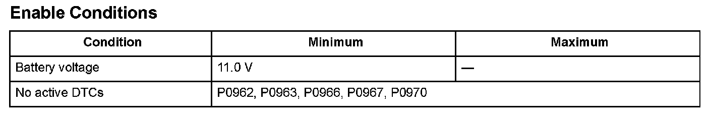 A/T clutch pressure control solenoid valve C is used for clutch pressure control and lock-up control. A spool in A/T clutch pressure control solenoid valve C pushes a valve according to the duty cycle that is controlled by the powertrain control module (PCM) so the hydraulic pressure is proportional to the current. The PCM measures the current flowing through A/T clutch pressure control solenoid valve C and uses feedback control to compensate for the difference between the actual current and the commanded one. If the measured current for the PCM output duty cycle is not within a specified range (Open or short), a malfunction is detected and a DTC is stored.