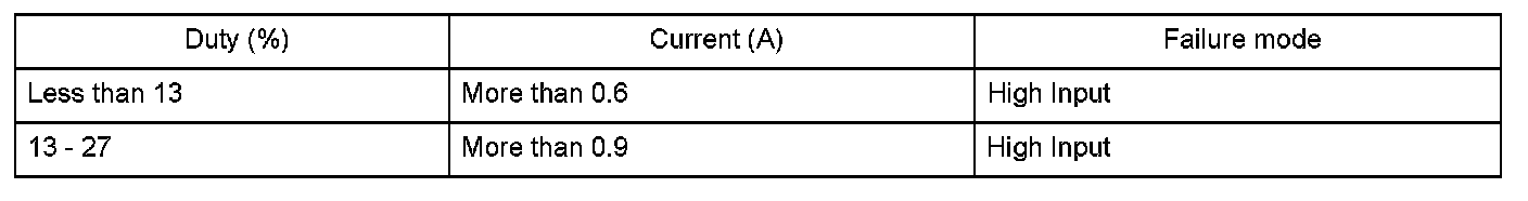 The measured current for the PCM's command value is as specified here for at least 1 second.