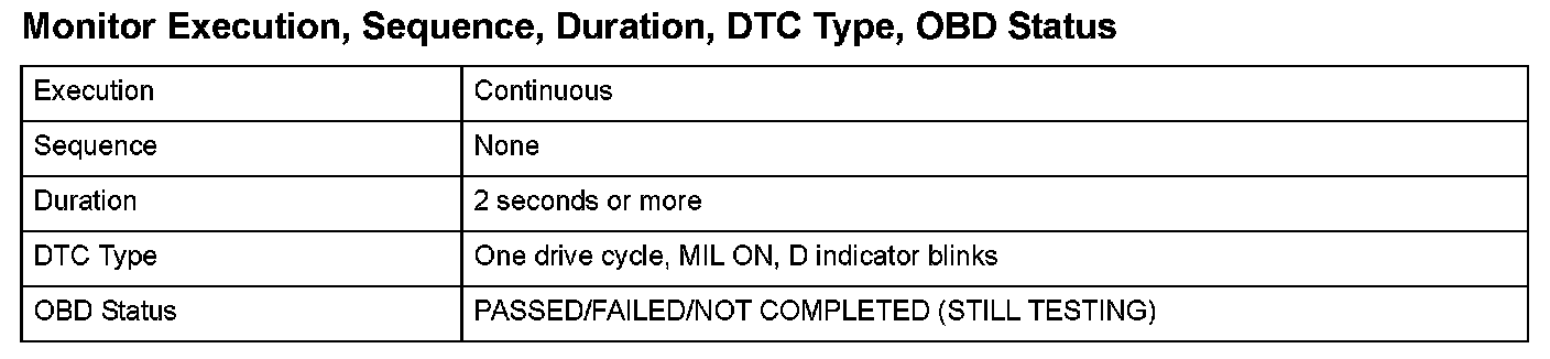 Monitor Execution, Sequence, Duration, DTC Type, OBD Status