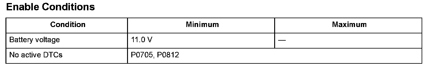 The transmission range switch is attached to the control shaft. Operating the shift lever makes the control shaft rotate via the shift cable. The A/T gear position indicator indicates which position is selected according to the Low/High signal combinations which vary based on the control shaft rotational angle. The control shaft changes the position of the transmission range switch, activates the manual valve, and switches hydraulic pressure to shift the transmission through forward/neutral/reverse. The transmission range switch signal is used to determine the shift schedule. The voltage is 12 V (High) at the powertrain control module (PCM) input terminal when each transmission range switch position is Open, and it is 0 V (Low) when each switch is closed. If the RVS switch is OPEN with the shift lever in the R position while shifting between the P, R, and N positions, the PCM detects a RVS switch OPEN failure and a DTC is stored.