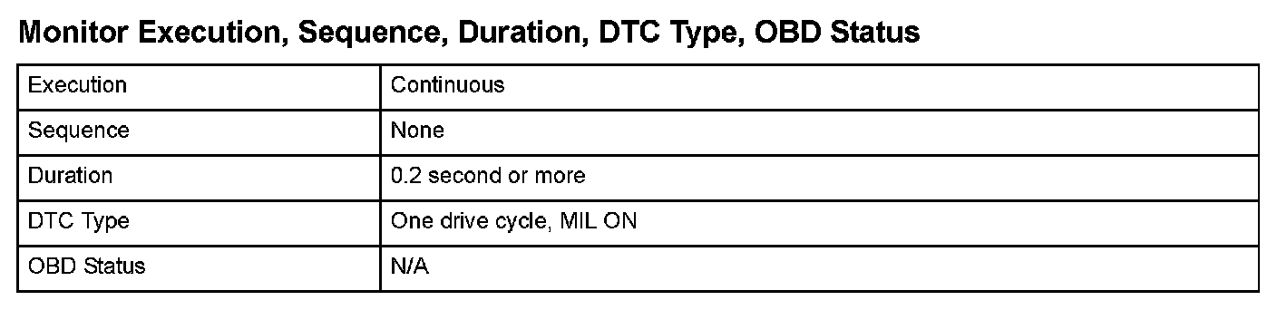 Monitor Execution, Sequence, Duration, DTC Type, OBD Status