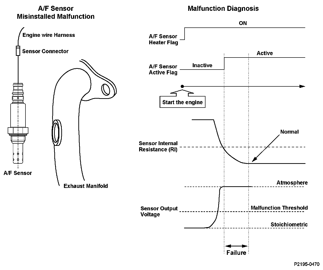 When the rear air/fuel ratio (A/F) sensor (bank 1, sensor 1) is properly connected to the engine wire harness, but it is not installed in the exhaust pipe, the A/F feedback is not done properly even if the rear A/F sensor is active after starting the engine. Thus, the exhaust emissions increase.