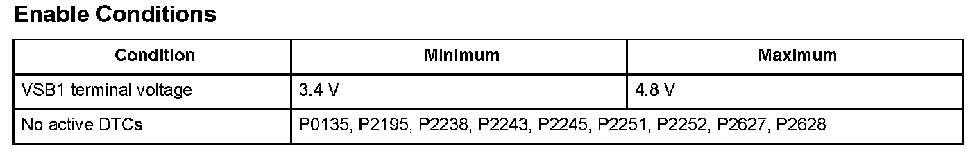 If the IPB1 (pump cell current draw, bank 1) terminal voltage is out of a specified range, the ECM/PCM detects a malfunction and stores a DTC.