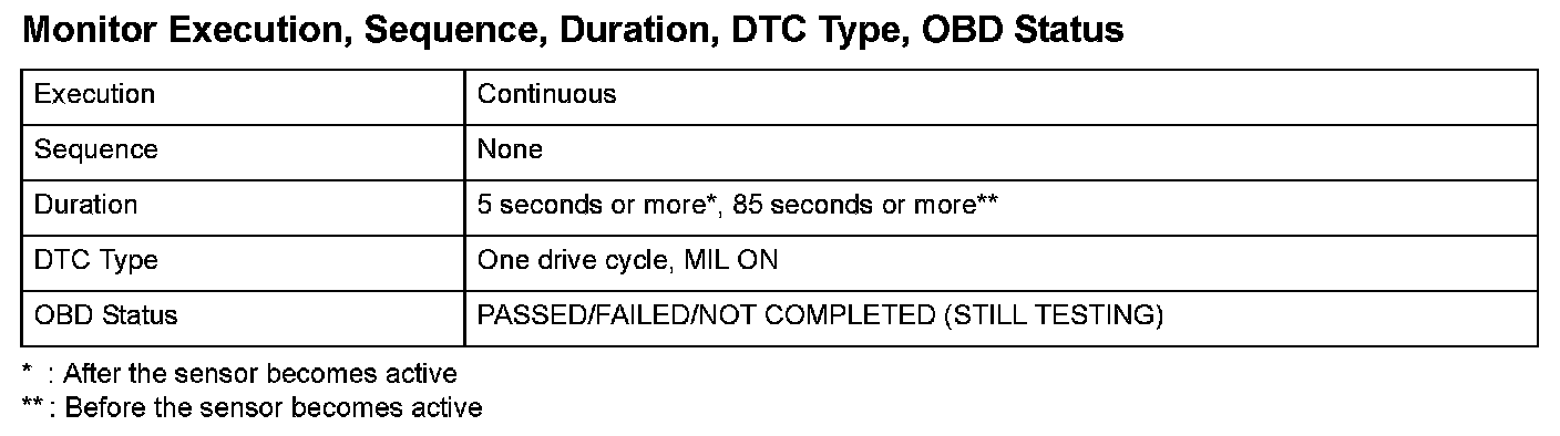 Monitor Execution, Sequence, Duration, DTC Type, OBD Status