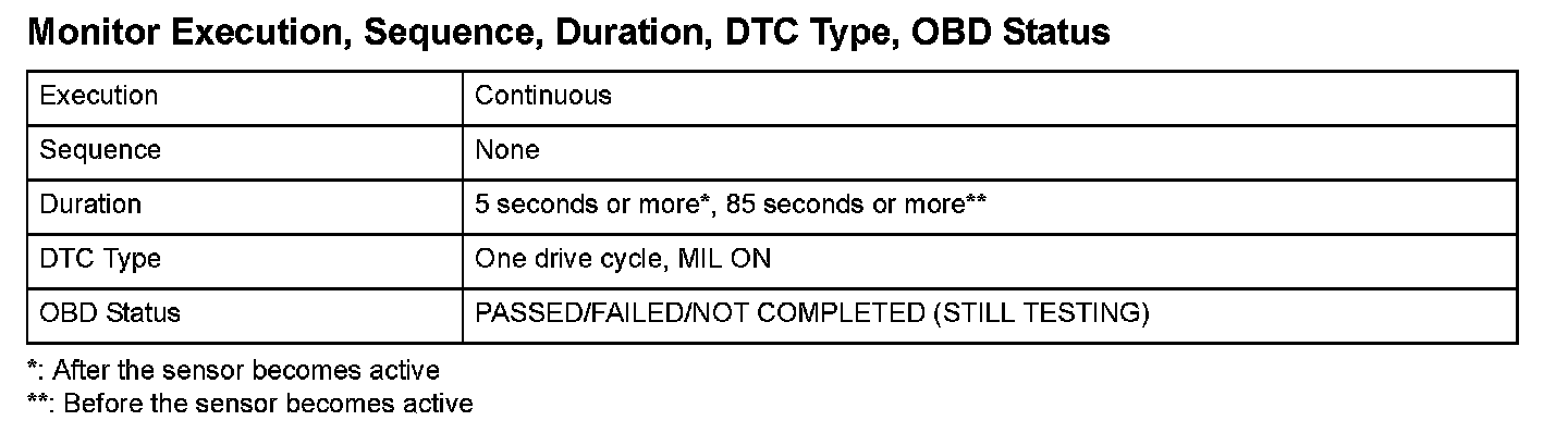 Monitor Execution, Sequence, Duration, DTC Type, OBD Status