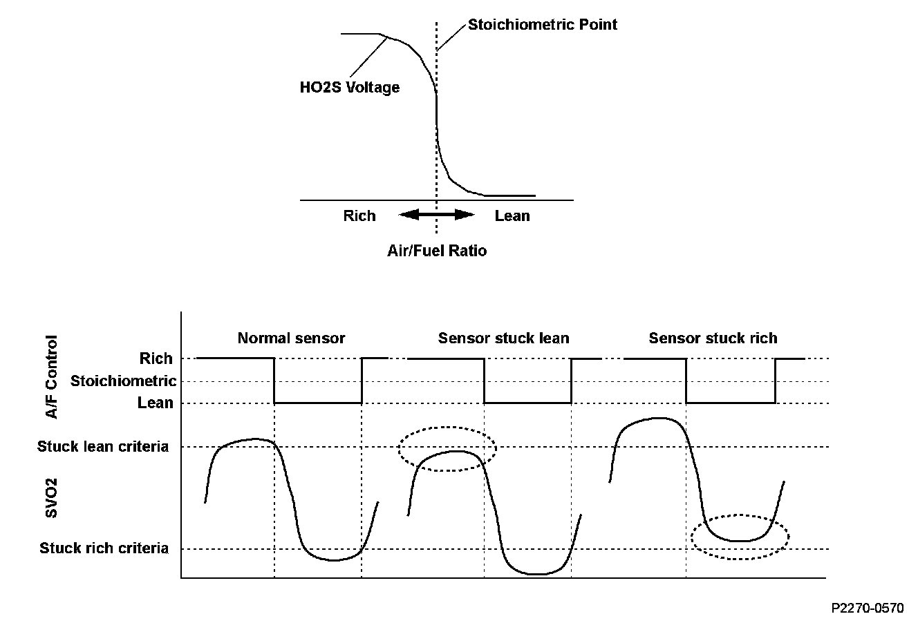 DTC P2272: Front Secondary Heated oxygen Sensor (Secondary HO2S (Bank 2, Sensor 2)) Circuit Signal Stuck LeanGeneral Description
