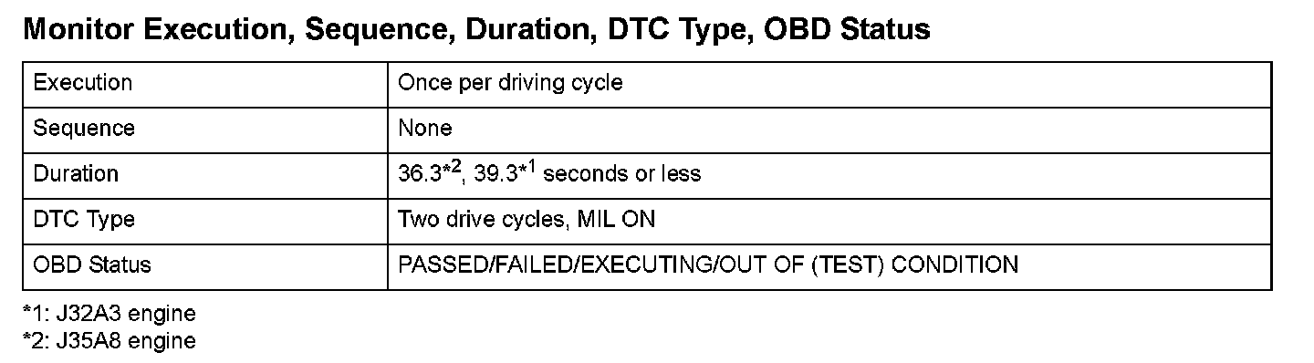 Monitor Execution, Sequence, Duration, DTC Type, OBD Status