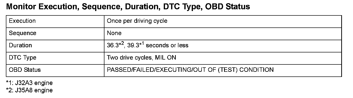 Monitor Execution, Sequence, Duration, DTC Type, OBD Status