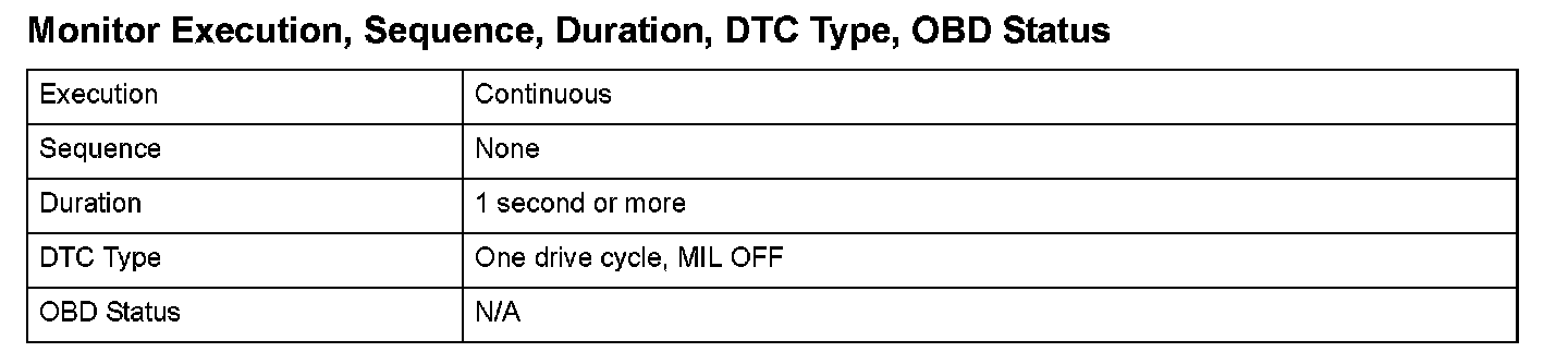 Monitor Execution, Sequence, Duration, DTC Type, OBD Status