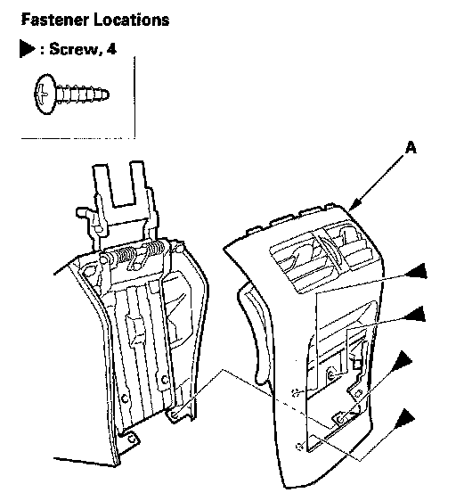 2. Open the armrest (A) and remove the screws, then remove the armrest.