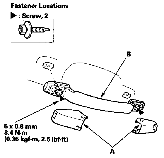 4. Install the grab handle in the reverse order of removal, and if the threads on a grab handle screw is worn out, use an oversized self-tapping ET screw (P/N 90137-SOA-003) made specifically for this application.