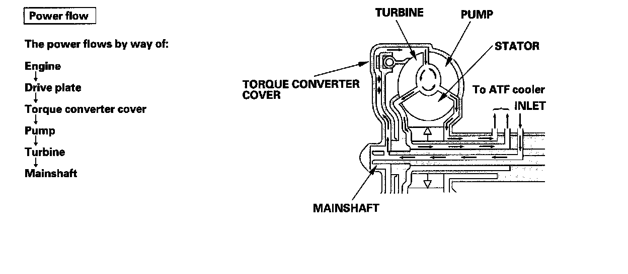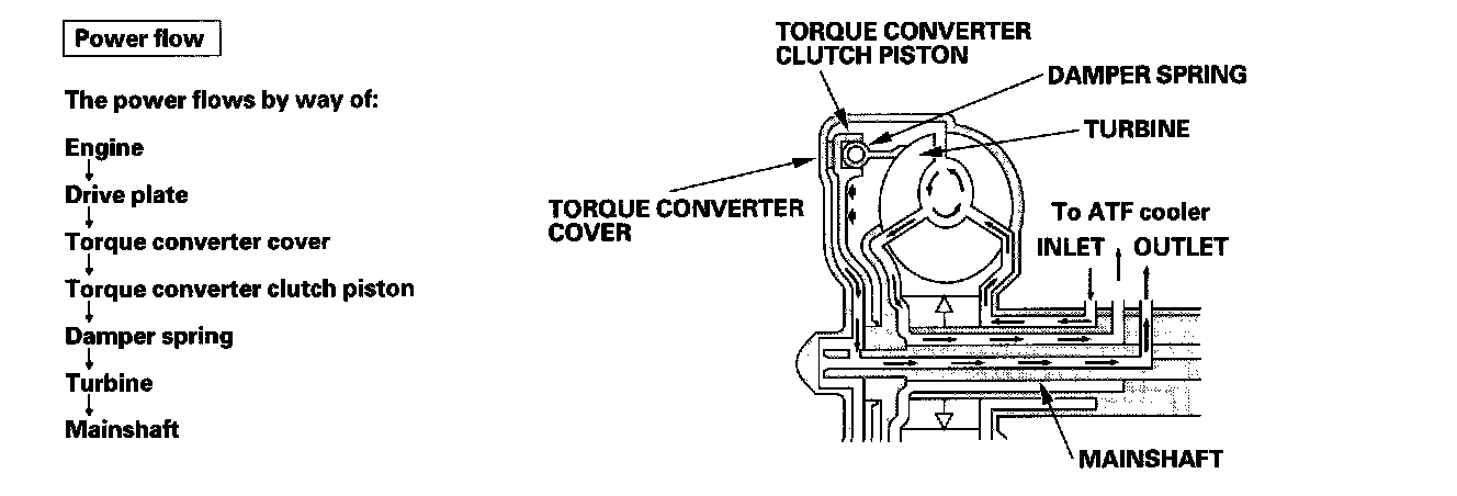 Fluid entered from the chamber between the torque converter cover and the torque converter clutch piston passes through the torque converter and goes out from the chambers between the turbine and the stator, and between the pump and the stator. As a result, the torque converter clutch piston moves away from the torque converter cover, and the torque converter clutch lock-up is released; the torque converter clutch lock-up OFF.