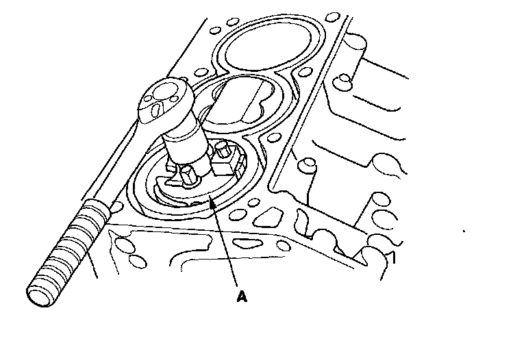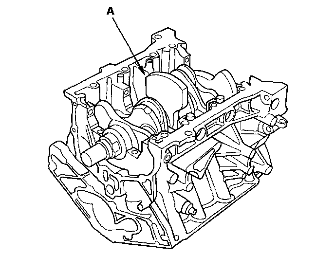 20. Lift the crankshaft (A) out of the engine block, being careful not to damage the journals.