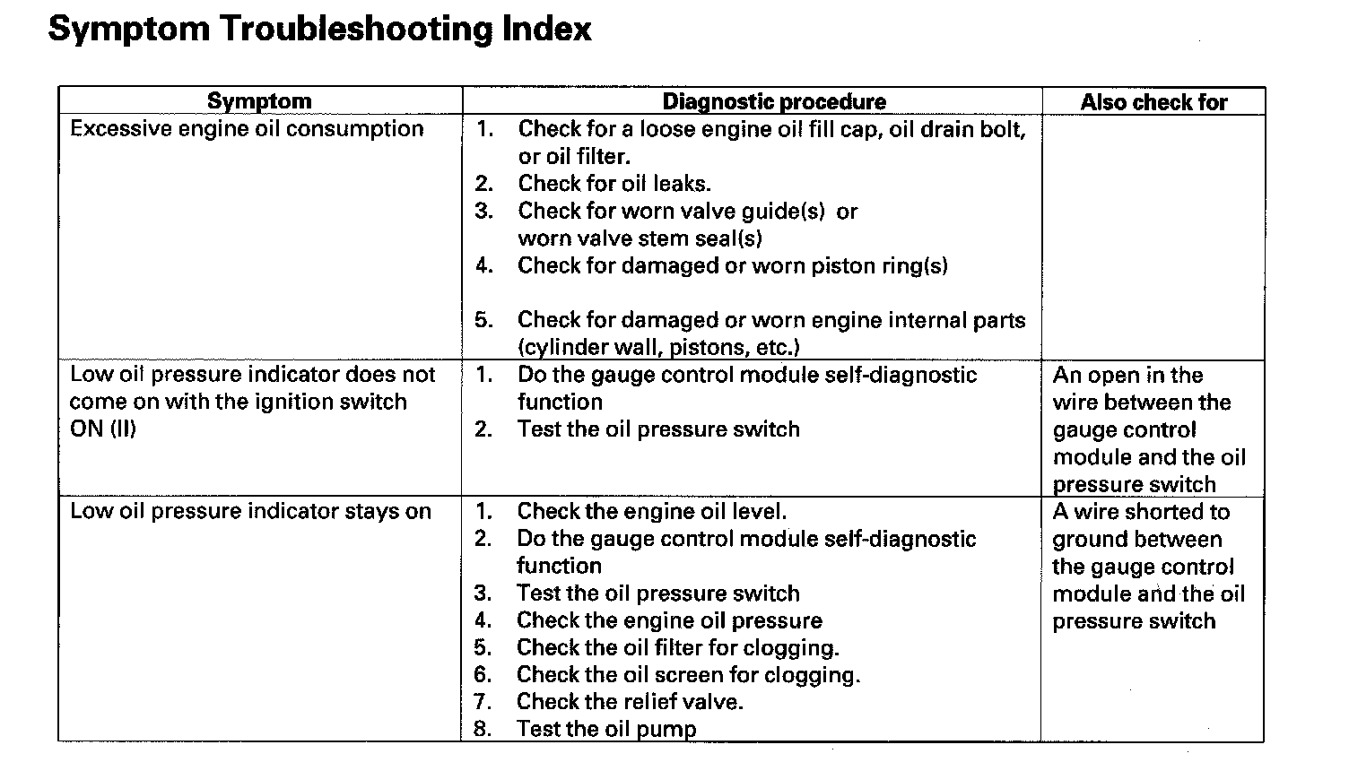 Symptom Troubleshooting Index: