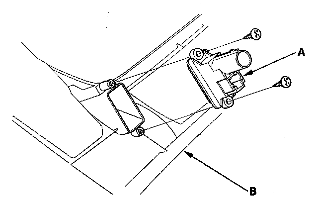 2. Remove the self-tapping screws and the in-car temperature sensor (A) from the driver's dashboard lower cover (B).