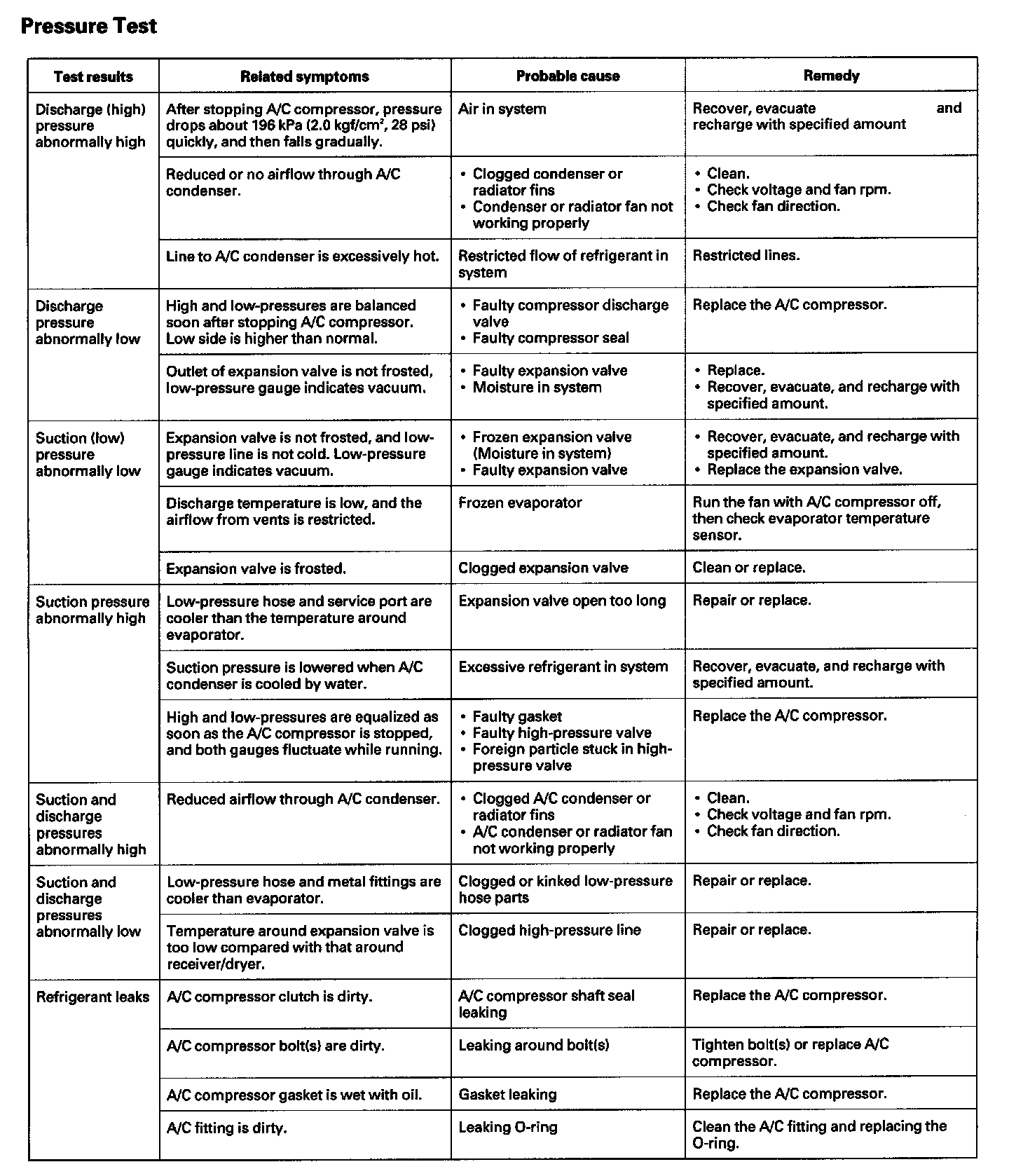 - Complete the low-side pressure test and high-side pressure test in the same way.